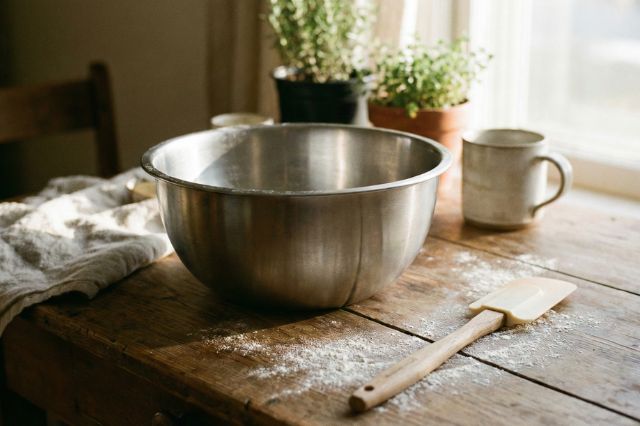 必要なのは、大きめのしっかりとしたボールが一つと、最初に粉と水を混ぜ合わせるためのゴムベラが一本。